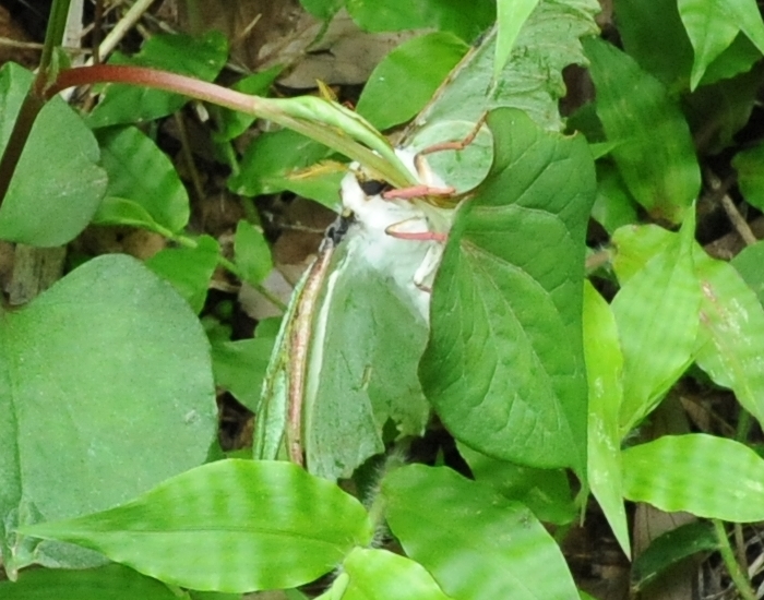 擬態っていうんでしょうか、ぱっと見は葉っぱです。たまたま足が不自然な枝に見えたので気づきました。
