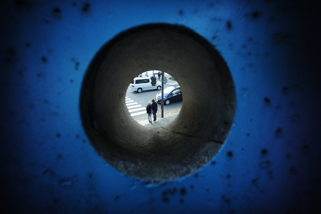 歪んで見えたのは、組み合わせたレンズの影響でした。