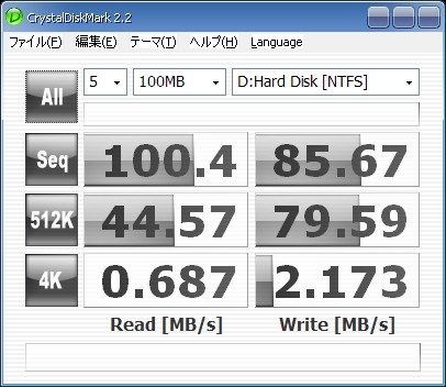 紹介に貼った画像はフォーマットした直後の結果なのですが、400GBほどファイルを置いている現在ではこの画像くらいの結果でした。