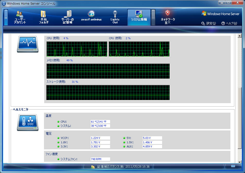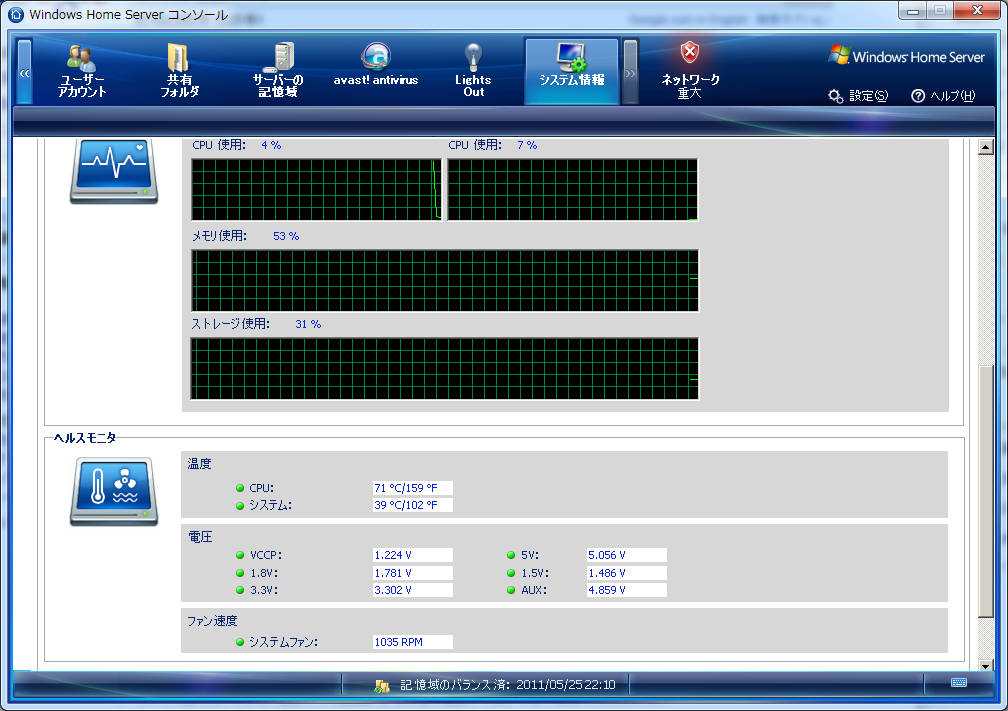あと、セキュリティ対策として avastWHS版をインストールしたが、しっかりとしたウイルス検索をすると