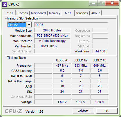 そして、自宅のGA-EX58-DS4に組み込んだメモリを確認すると、これとCosairの1GBのモジュールが3つ。