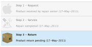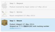 16:13 修理サービス受付のメールが届く。2011/5/17 03:03確認の最初のステータス