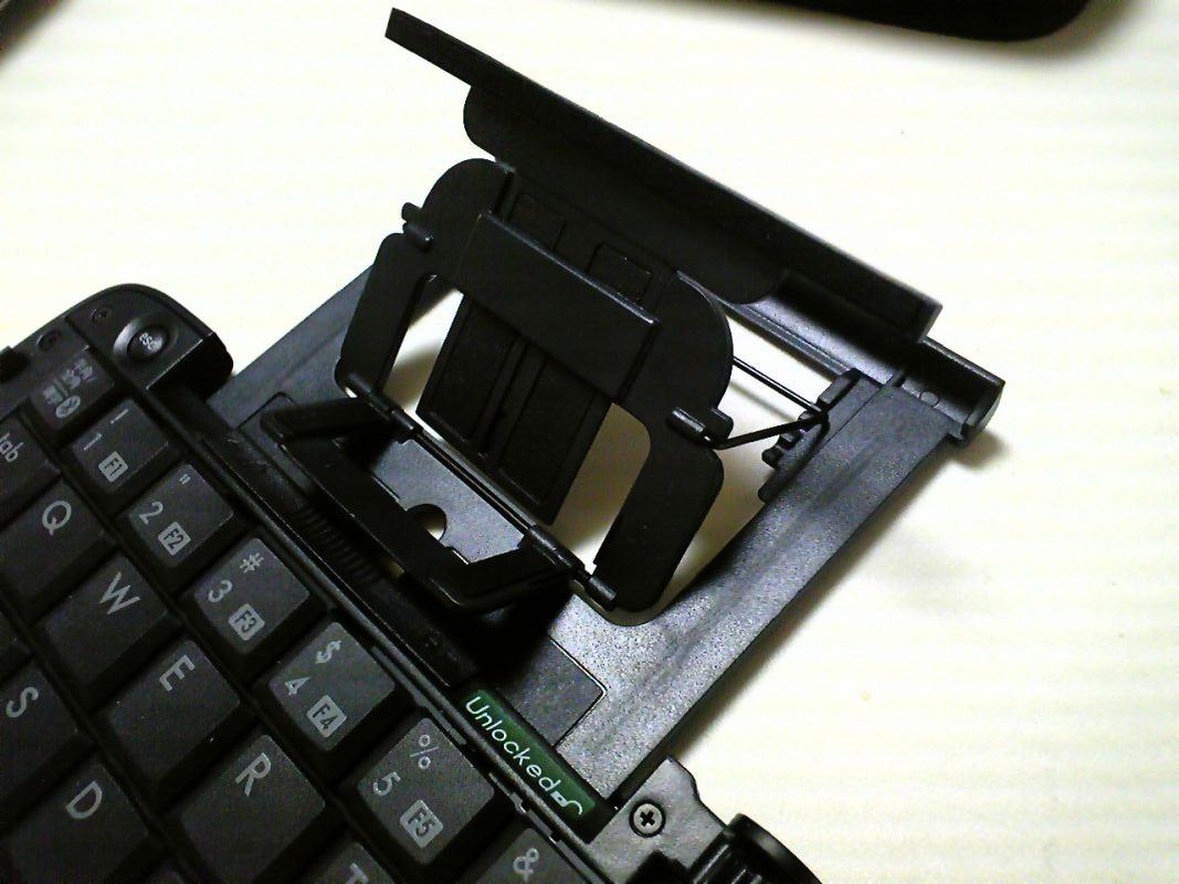 携帯台側面。背面の鉄フレーム部分で角度調節します。(3段階まで)