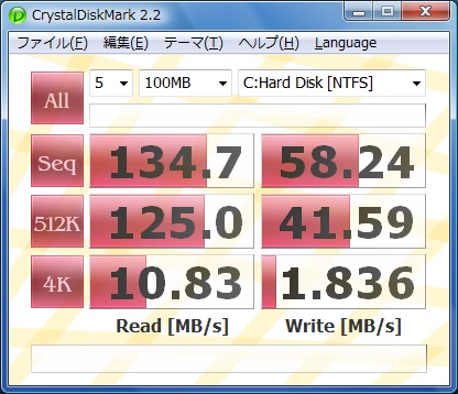 公称ほどでてませんが、まあこのPCではこんなものでしょう。