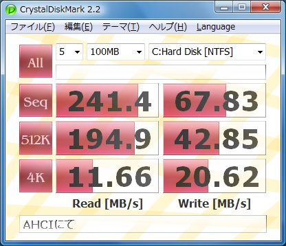 あと、BIOS設定でIDEからAHCIにしたらベンチが変化しました。