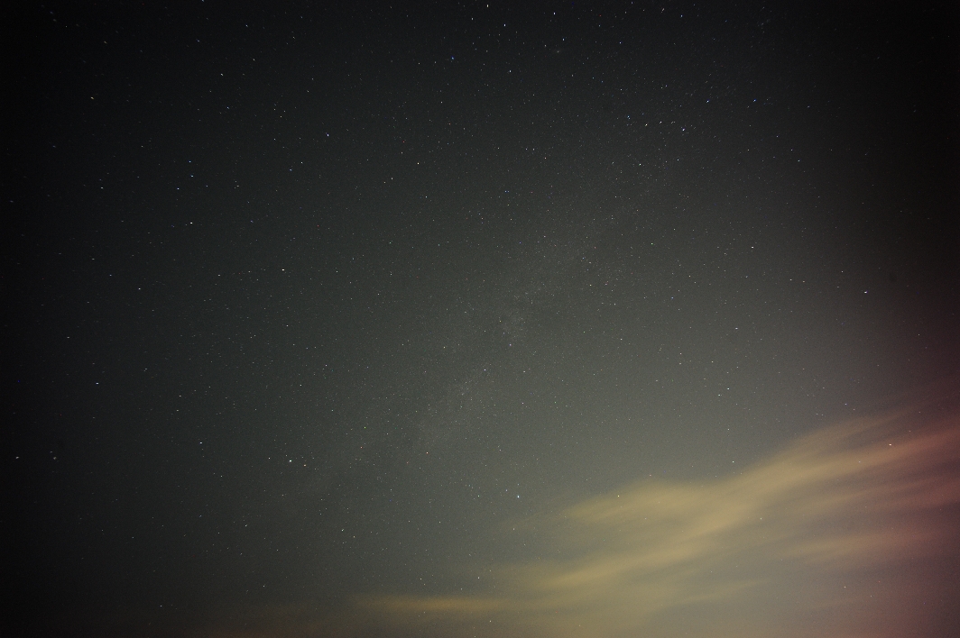 【写真1.】夏の天の川です。わし座からカシオペア座まで入ってしまいます。ついでに北極星も。
