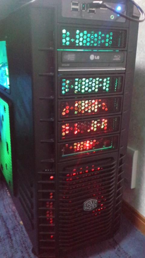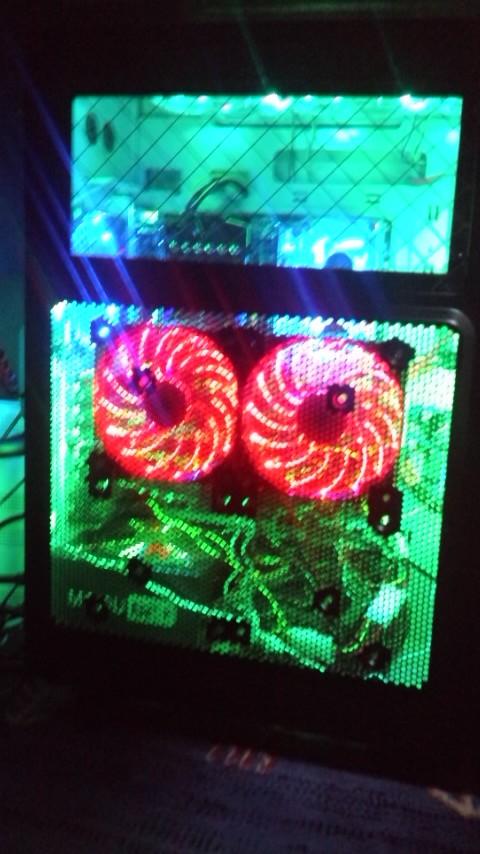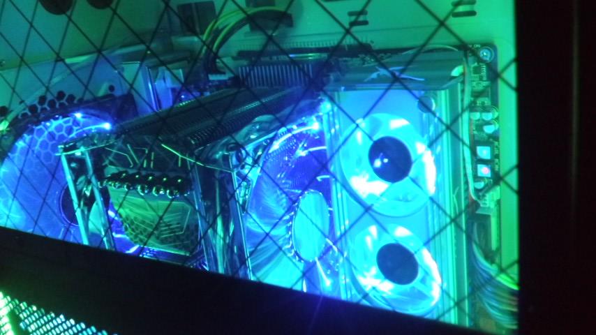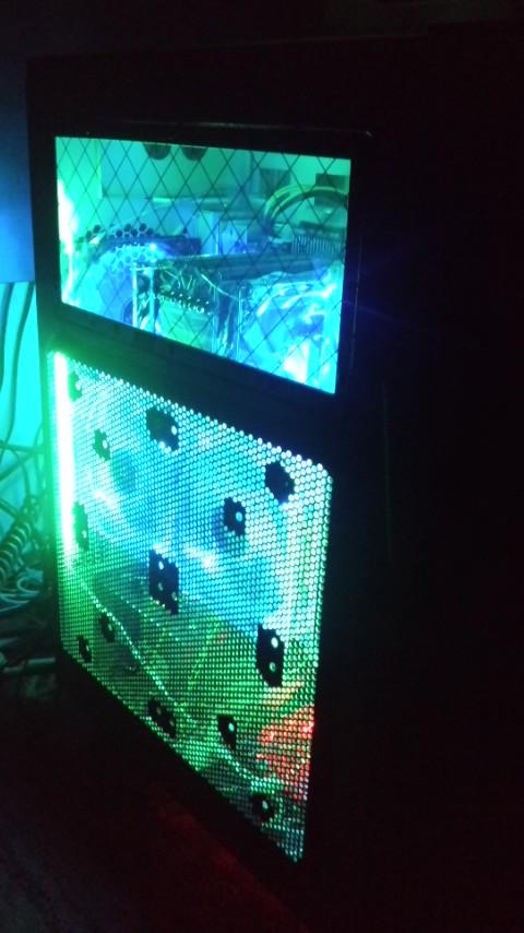側面には別PCにつけておいた青色ファンを持ってきて取り付け。