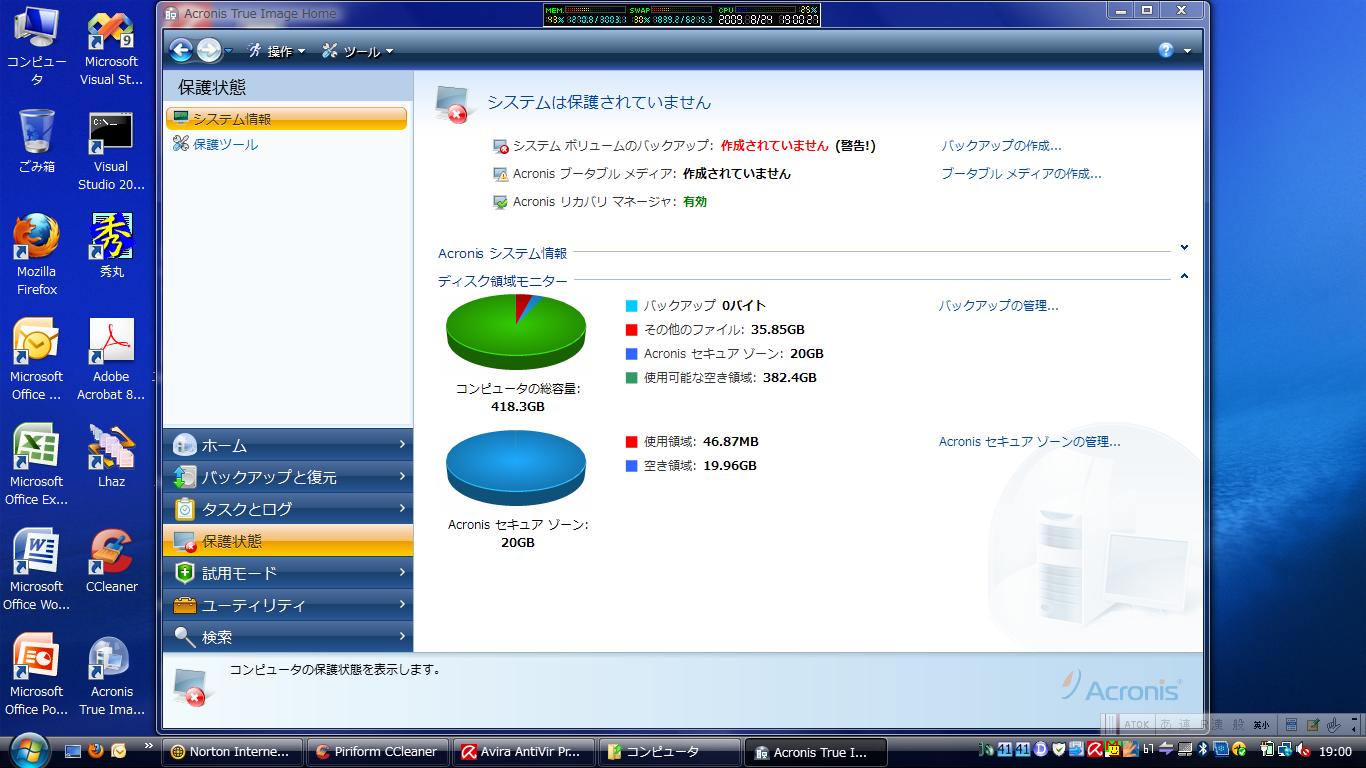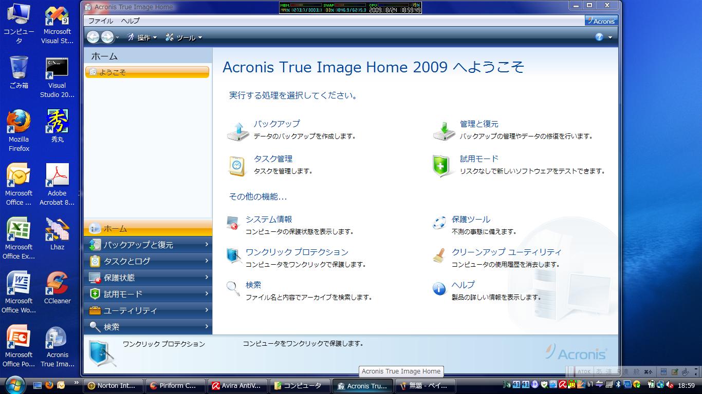 OS標準機能でイメージスナップショットのバックアップ取れるんだけど 同容量のHDDにしか戻せないので こういうツールは必須ですね