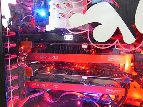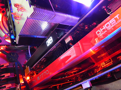 位置的に側面のX-Fiロゴはちょうどアクリルから見えるし、同じく側面にロゴがあるXFXのHD7770との組み合わせがカッコイイ。