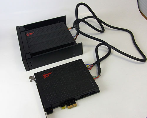 さりげなく3.5インチ側ユニットのデザインがサウンドカード本体のシールドとそろえているのもステキ。装着したらまず見えない箇所なのだが。