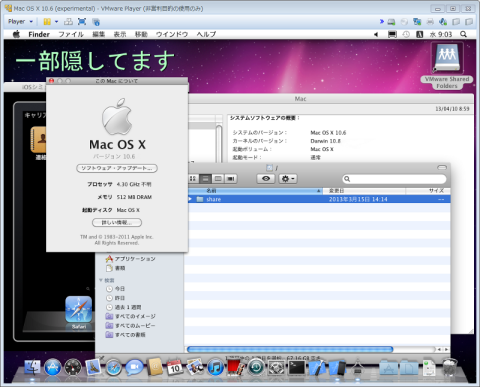 私の周りには、Apple信者が少ないので、Mac自体を見ることが少ないので、VM上であってもかなり新鮮にかんじますね。