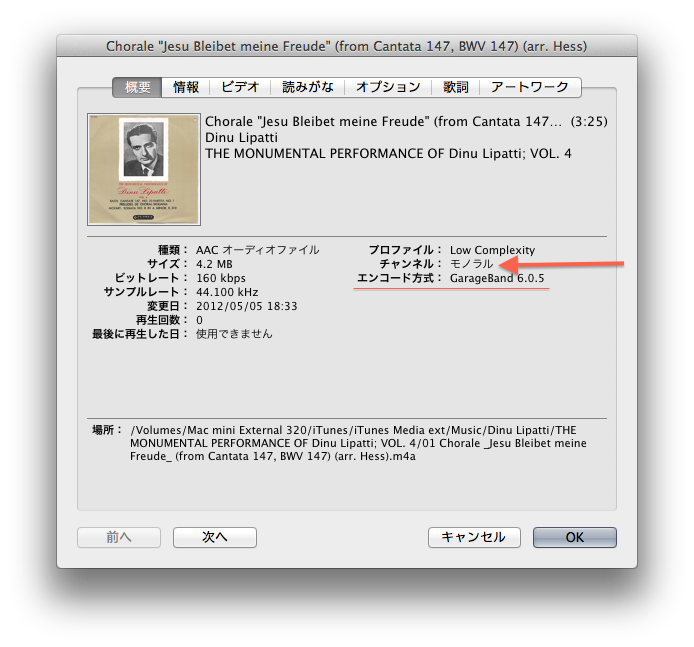 でもiTunesになるべく由緒正しいモノラル・データを取込みたくてやってることなんですが,GarageBand '11でのモノラルの扱い方がなんか以前と変わってよくわからなくなってるので,この後いろいろ試してみます。