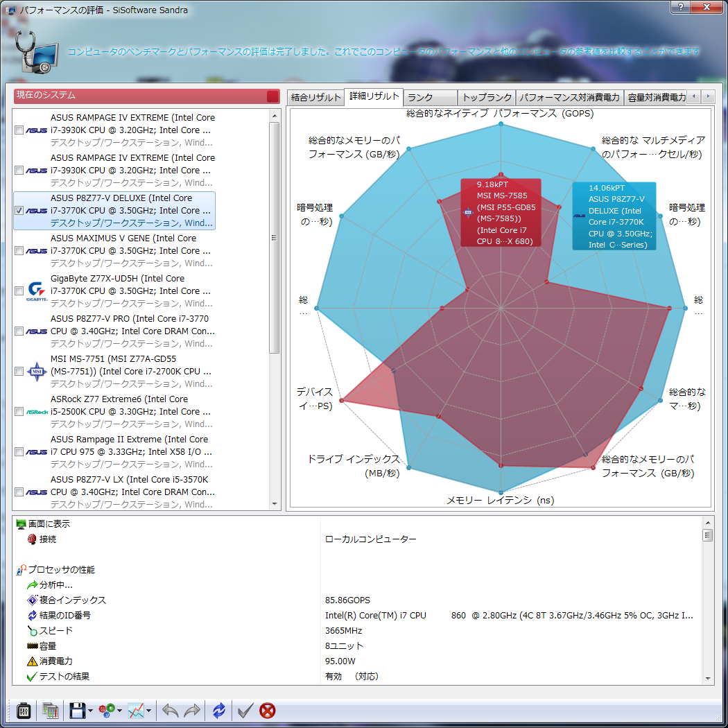 赤が私のMSI P55-GD85+Core i7 i7-860(OC3.6Ghz)です。