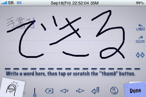 画面ほぼいっぱいに文字を指で書きます.