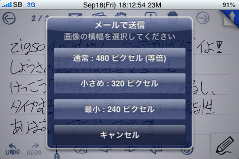 書いたメモを画像ファイルとしてメール貼付してくれるのです!