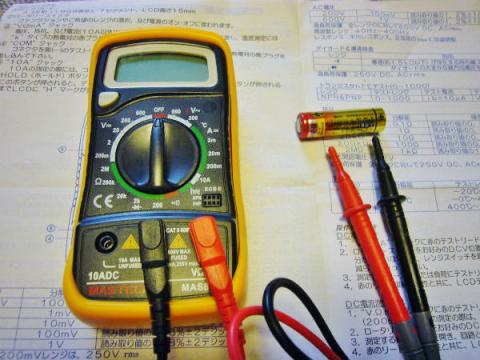 USBヘッダの5Vとか、ケーブルの通電とか、USBケーブルに12VのFanとか取り付ける為に極性とか測って使ってましたが、今回は何年前に買ったかが不明なPCのボタン電池CR2032が生きているかで調べました。