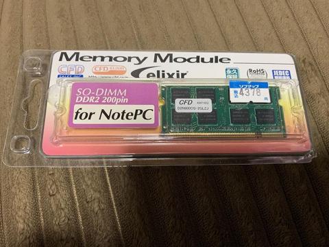 DDR4のSO-DIMM等で特売を見つけてストック用に買い込んできたのですが、その際に思わず買ってしまったのがこちらのCFD販売 D2N800CQ-2GLZJというDDR2-800 SO-DIMMでした。なにしろ税込み100円で新品が売られていましたので…。