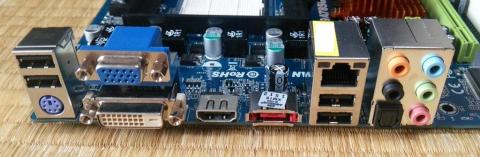 PS/2(KB専用)、USB2.0×4、VGA+DVI+HDMI、eSATA、