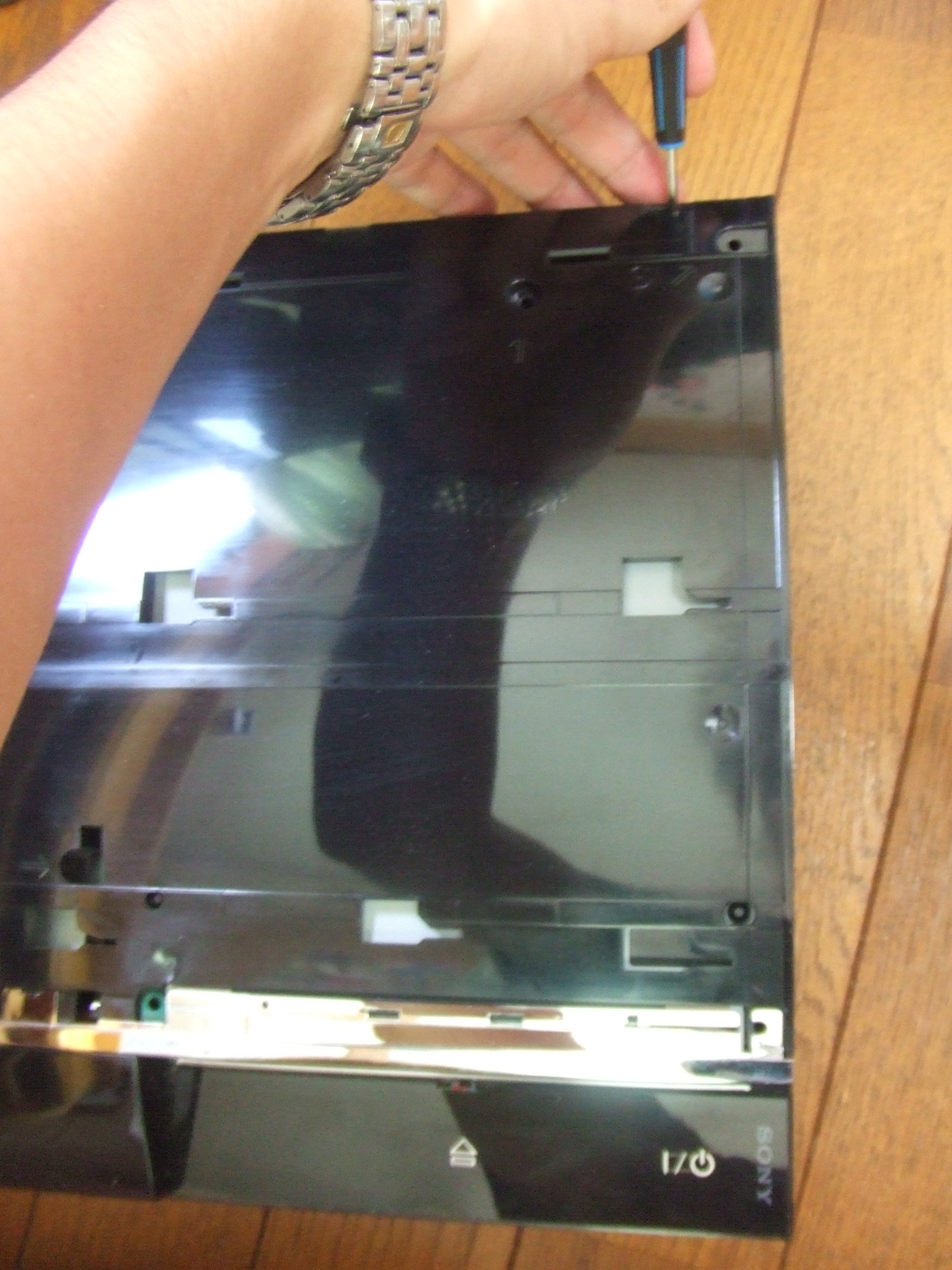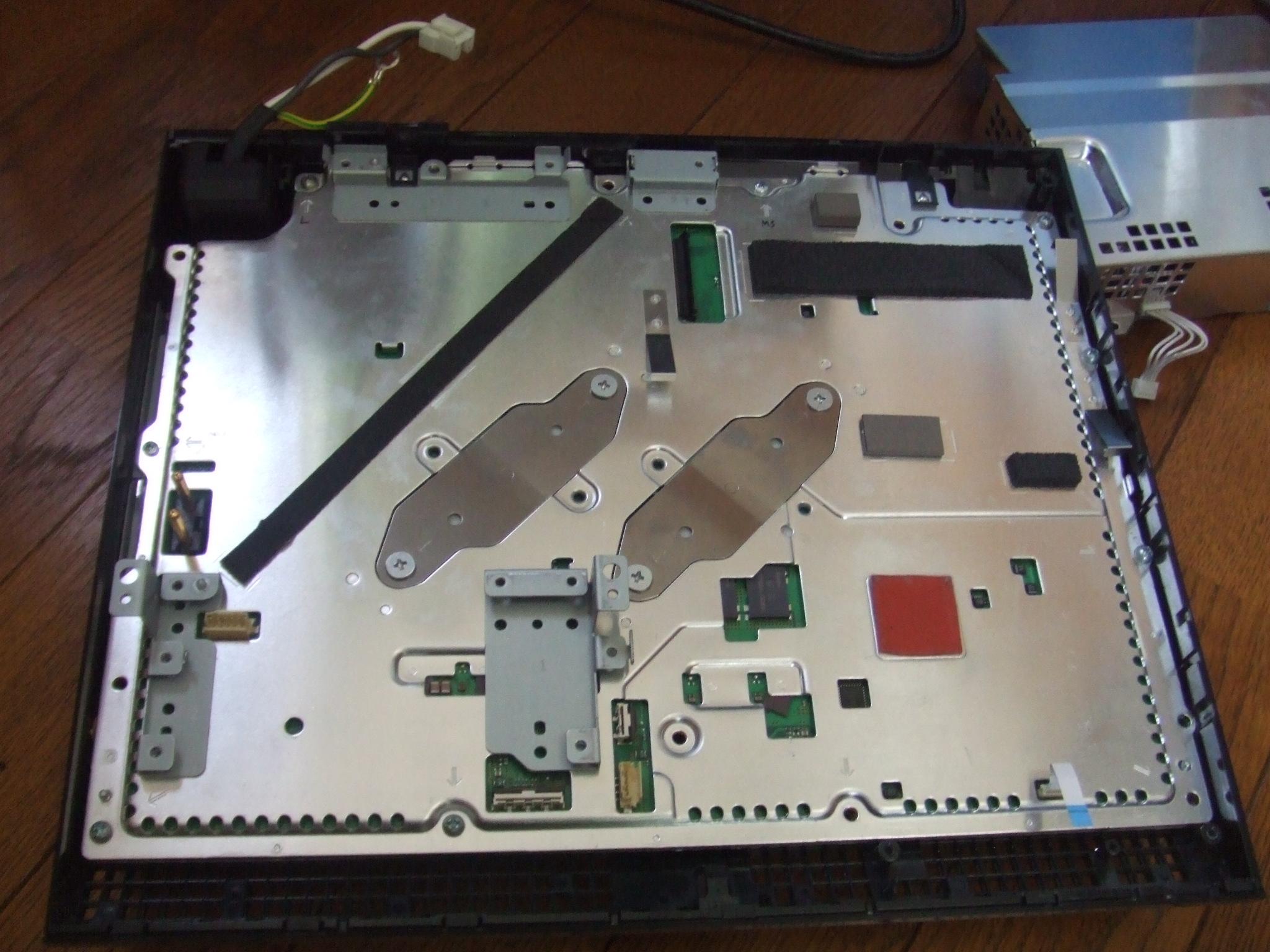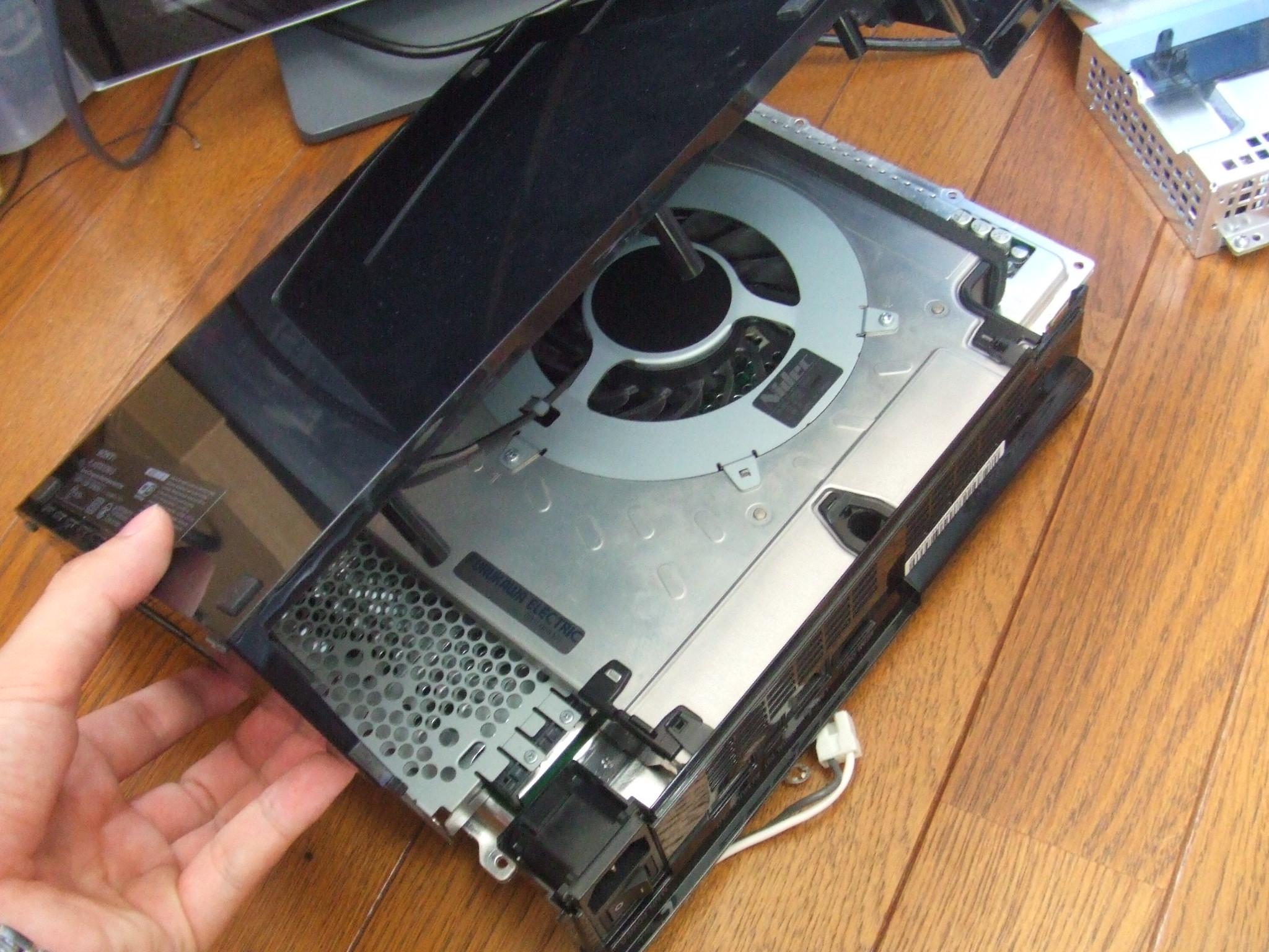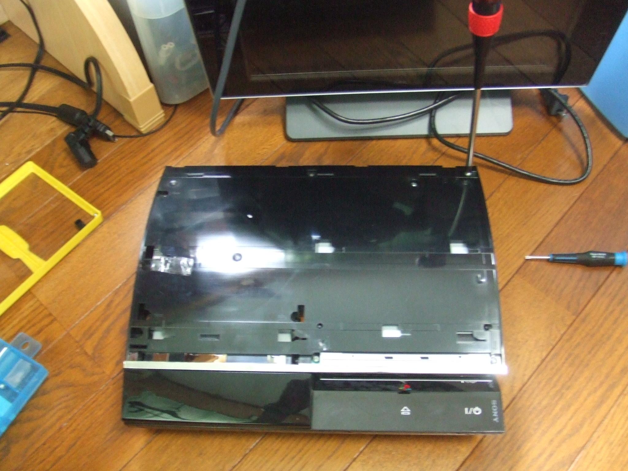 ネジを6箇所、白い電源コネクタを抜き、電源ユニットを引っこ抜きます