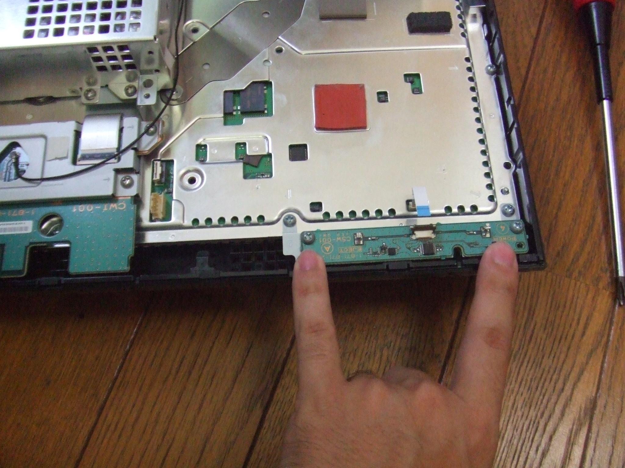 スイッチ部分のフレキと、4ヶ所のネジを外してユニットを取り外します