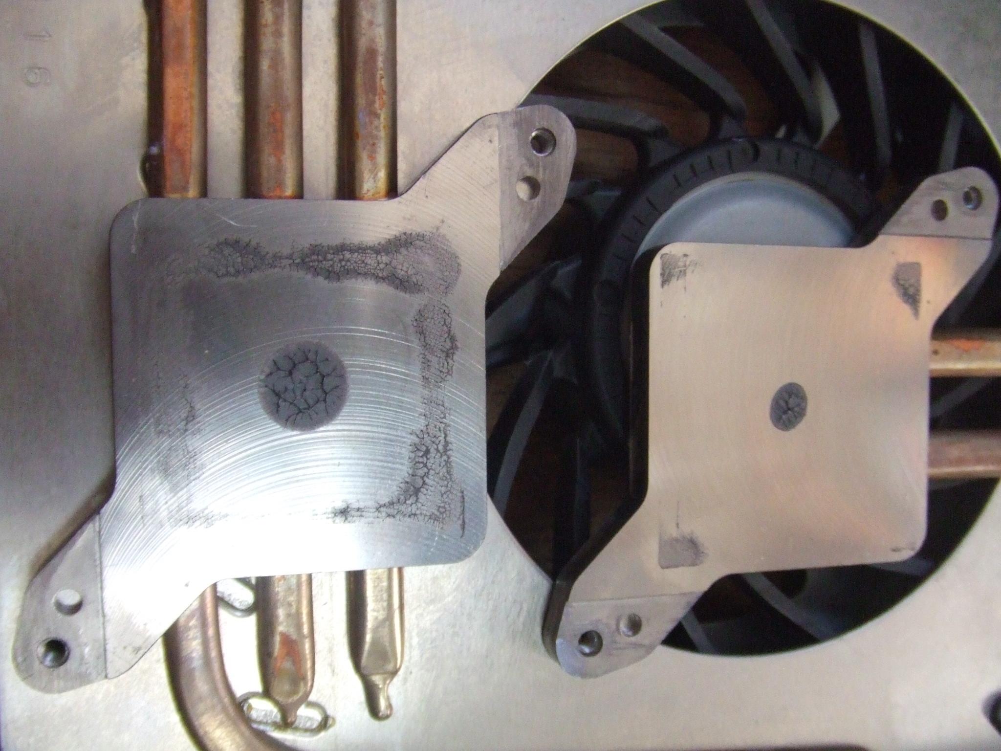 クーラーを見てみると中のグリスがチップとクーラーに接触していない