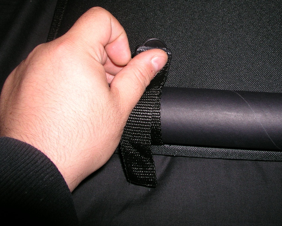 以前はマジックテープがペロンと出ていたらしいが、現行品は角の部分が全てマジックテープとなっており、ここを合わせることで固定する。軸が入っているので、割と頑丈。
