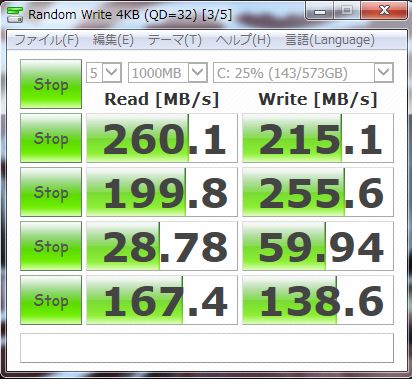 SSDは東芝製SSDが搭載されてるそうです。これでPSE11&PRE11&Office2013が入ってるそうですごい・・・と、思いきや動作がめっちゃ遅い。CDMの数字...