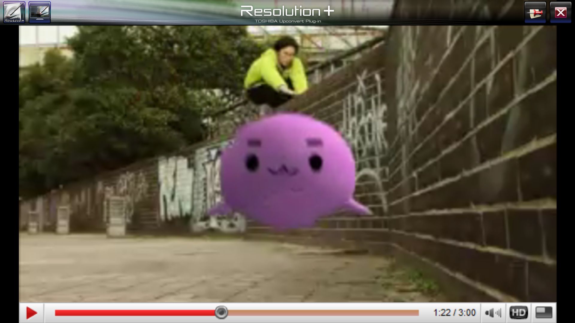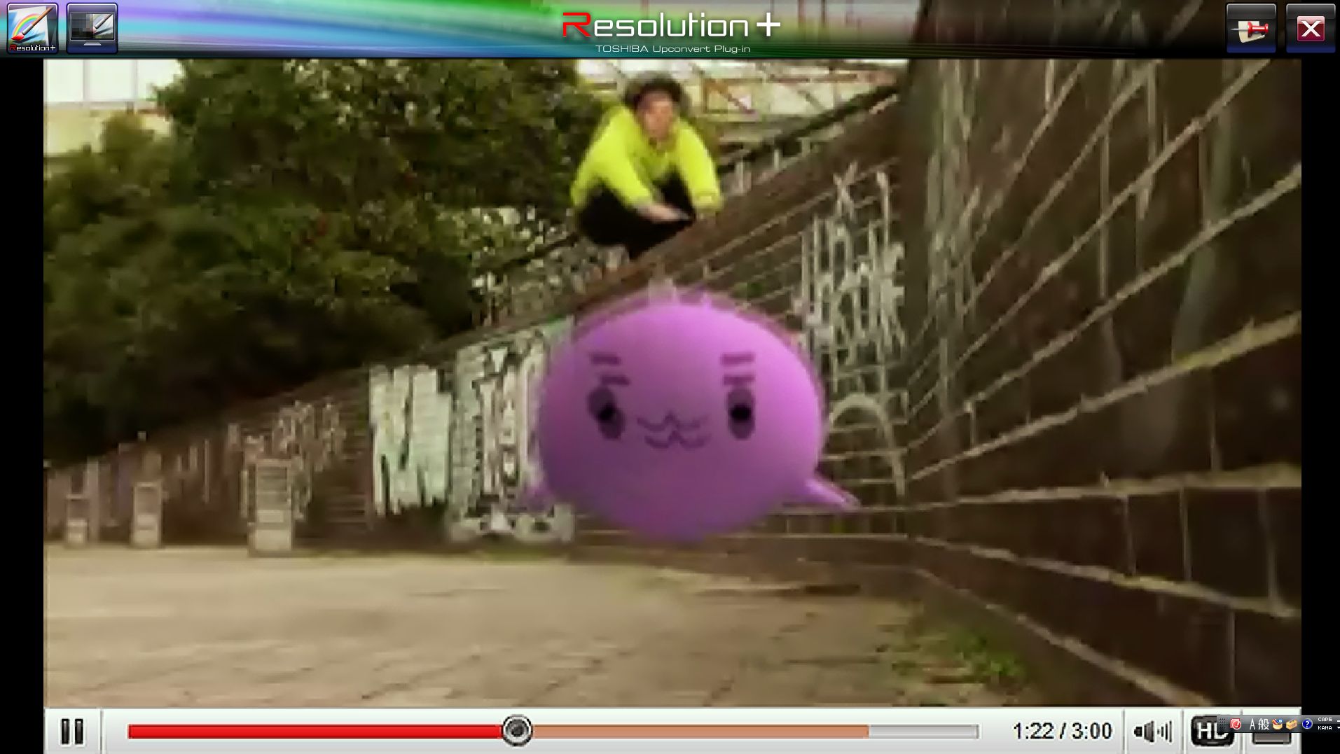 購入時にインストールされている「熊」というタイトルの720x480サイズwmv形式のムービー(約4MB)をアップコンバートしてみました。