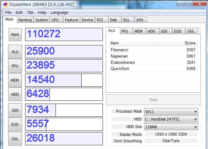 CrystalMarkはVista効果もあるのでしょうけれど奮いません。