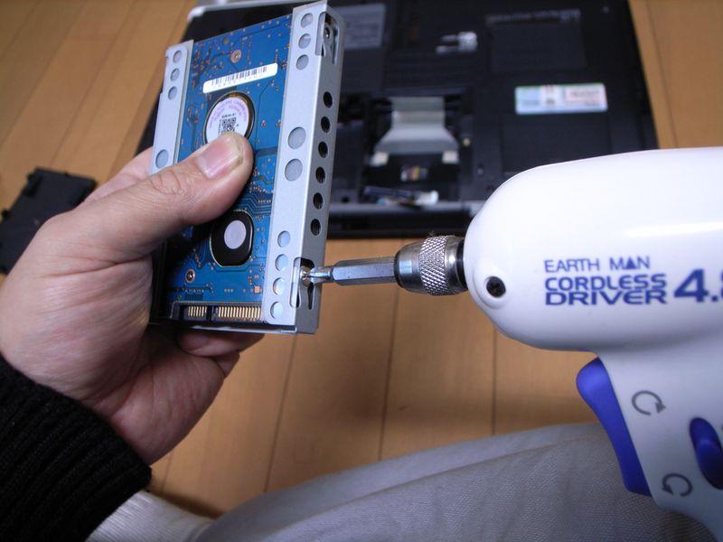まあ外側はあんまり関係なくてHDDの交換は底部の2箇所を開けて行います。