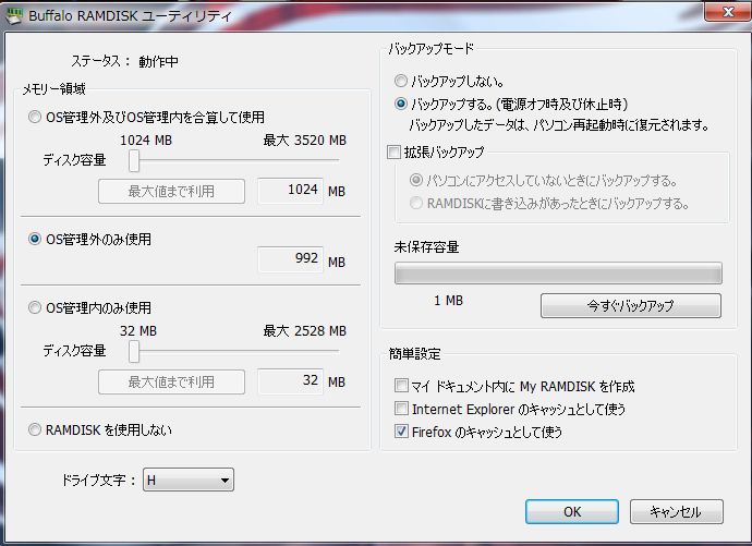 Intel社製SSDのレビューのときに紹介した無償ラムディスクのソフトをインストールしました。