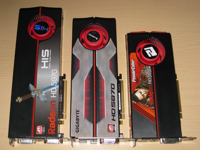 やはりHD 5850(右)が妥当なサイズかなと・・・HD 5970(左)とHD 5870(中央)は本当に長いですよね。まさに風洞版と言えるサイズ(^-^;