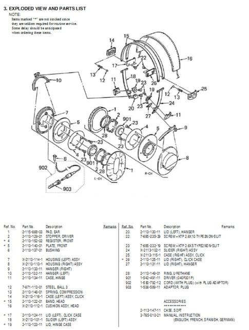→ヘッドバンド・スライダー・ハウジング・前面レジスター・前面板・ウレタンリング・ドライバー止め