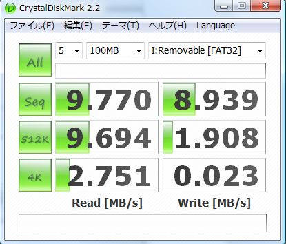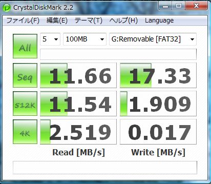 書き込みが速いような気がしたのでベンチをとってみましたがトホホでしたw