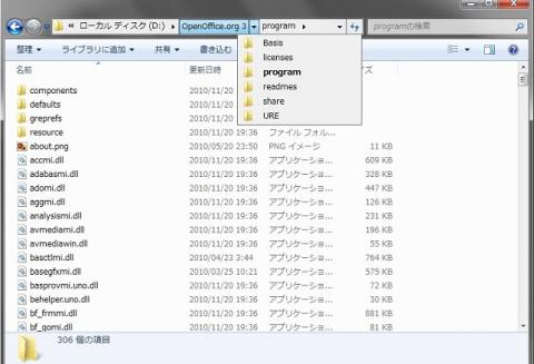 また、隣の矢印をクリックすると、そこの階層の別のフォルダにすぐ移動できるので、
