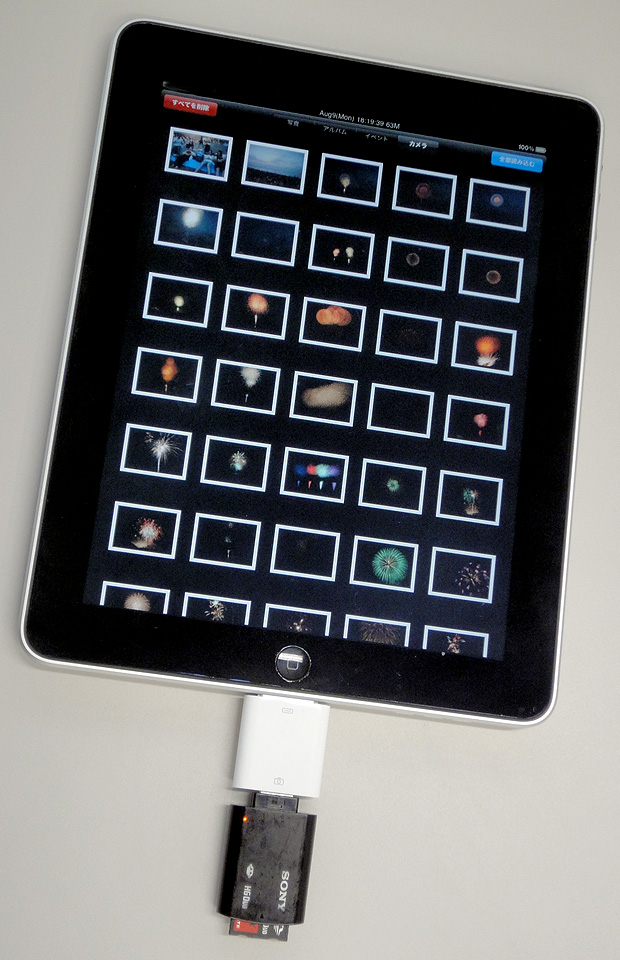 家に戻ってから,iPadをiPhotoにつないでMacへ吸い上げれば