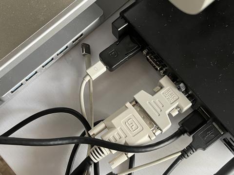 今でも普通に互換性がある、minidisplay port(要変換ケーブル)