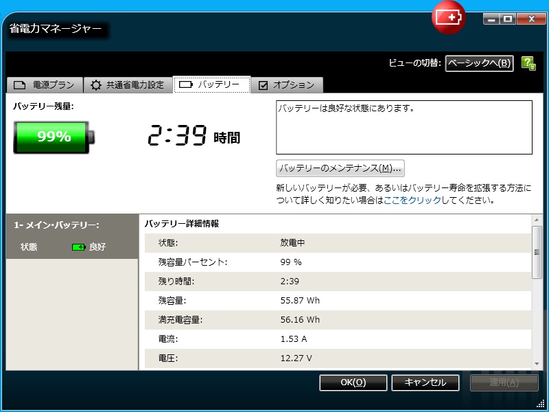 実際、3セルを装着して、バッテリのみで、ネットを見ていたときの