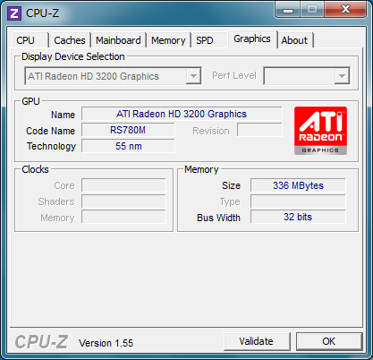 M780G:REDEON HD 3200 336MB (GPU-379.5MHz , Memory 393.8MHz)