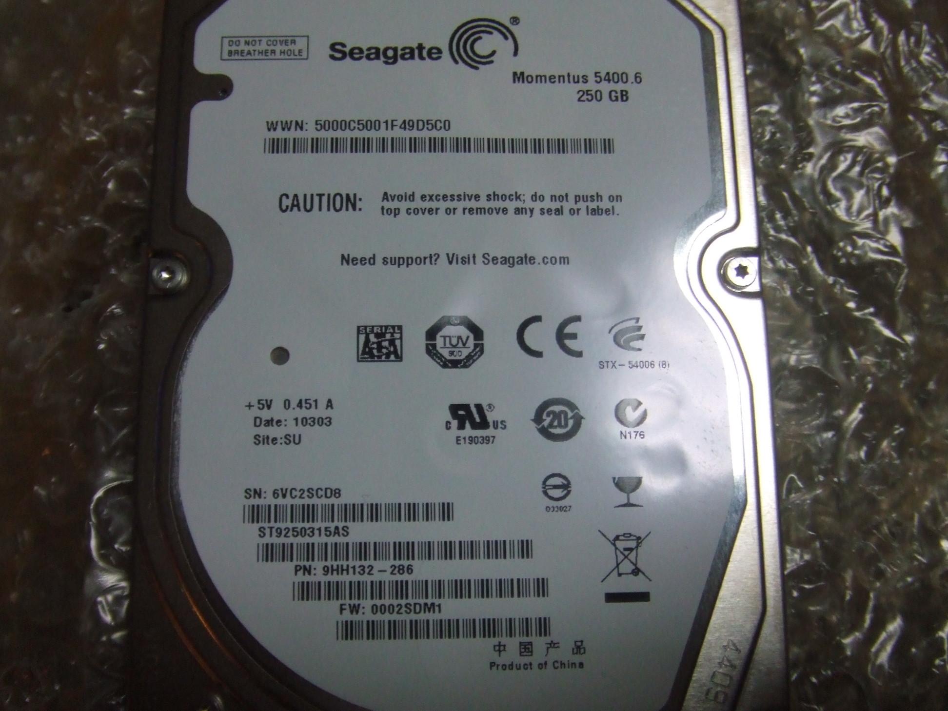 元から載っていたシーゲイト製の250GB HDD