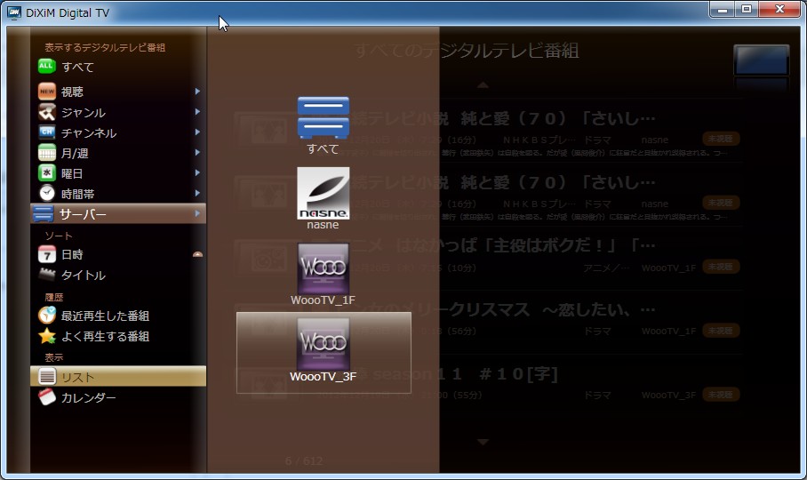 正常に動作していれば、添付画像の様に「DiXiM DigiTal TV」の「サーバー」のところに出てくるはずなんですが。