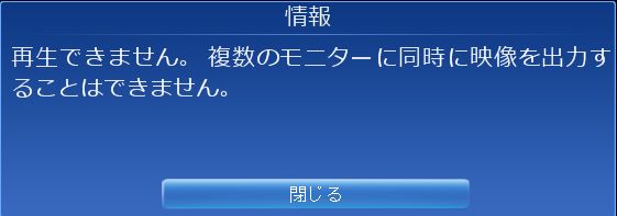 いろいろ試したところ、USBモニタの電源と1枚のディスプレイの電源を切っただけではダメで、PCに接続しているモニタのケーブルを抜いて、HDCPに対応したディスプレイのみ残した状態でないと観る事が出来ません。