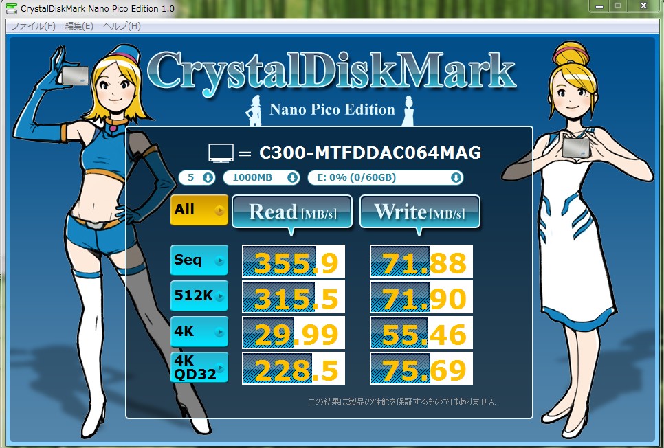 きちんとSATA3に接続したC300はそこそこのデーターなので、もう二度と買いません。