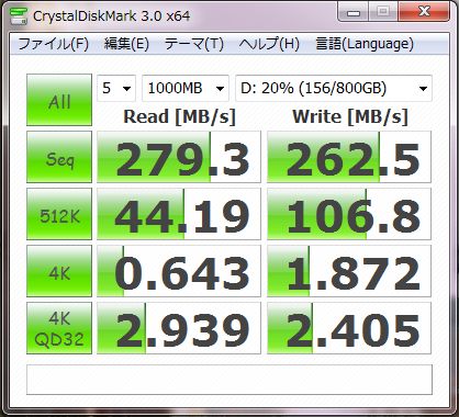 コントローラの問題か、SATA2.0での動作と、SATA3.0での動作速度に大差ない。RAID0での速度は、MarvelコントローラのSATA3.0よりIntelICHの方が速い。とり...
