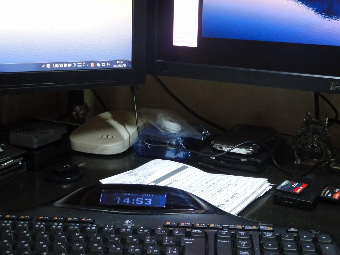 1100×700㎜のコクヨーのPCデスクを使い始めてもう10数年を経過しており、部屋の構成上これ以上大きなデスクは購入不可能にもかかわらず、モニターはドンドン大きく、かつ1台→2台(現在は3台)と増え机はモニター置き場と化し、書類や他のアイテムが置けないものになっていました。