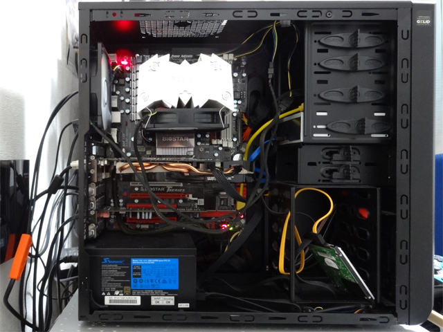 また、当時興味があった「裏配線」ができるというのが良かったです。プロはほとんどのケーブルを裏に持っていくみたいですが、自分は技術がなかったので、今では24PIN電源の太いケーブルだけ裏に回してます。それだけでも内部はかなりスッキリ。エアフローもバッチリ。