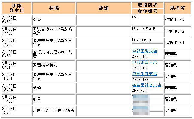こないだのマニラ発のEMSは5日くらいかかったっけ・・