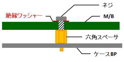 ケースとマザーの間に付ける六角スペーサと、マザーを固定するネジ留めに使います。