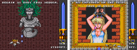 第1ステージのボス・メデューサとクリア後のビジュアルシーン