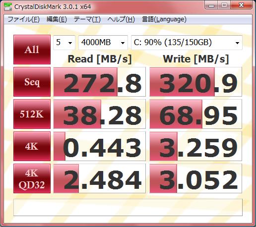 ベンチはSATA3.0(6Gb/s)で接続してOS入れているシステムディスクになってる